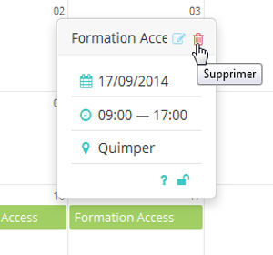 La suppression d'un événement est plus fluide : elle se fait directement sur l'agenda. Plus d'allers-retours avec une page de confirmation.