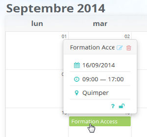 Des info-bulles s'affichent automatiquement au survol d'un événement.